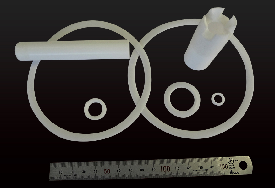 高機能シール製品の製造で培った加工技術で、樹脂精密切削加工製品を短納期で供給致します。樹脂加工エリアは温度による寸法変化を防ぐため24時間24~26℃で室温管理をしています。最も寸法精度の厳しい製品として、PTFE樹脂部品で内径φ25.0±0.02で管理している製品があります。