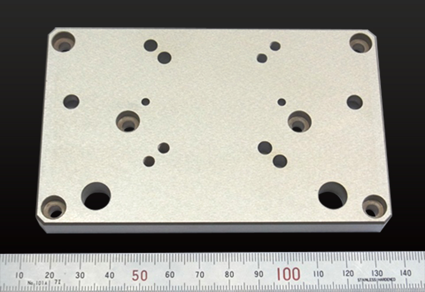 1973年の創業以来、精密プレス金型の製作で培った、切削、研削、放電加工技術を駆使した小ロット多品種の複合加工を得意としております。なかでもSKD11などの焼入れ材のワンストップ加工工場としてお客様に評価していただいております。ワークサイズとして多いのは指先サイズから手のひらサイズ。プレートは200*500までの加工に対応いたします。