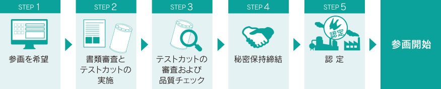 IoMの参画には、認定制度に基づいた品質管理体制の審査、テストカットによる製品審査を行い、各審査をクリアした企業と秘密保持契約を締結することで、認定企業として初めてIoMに参画できる仕組みとなっています。
